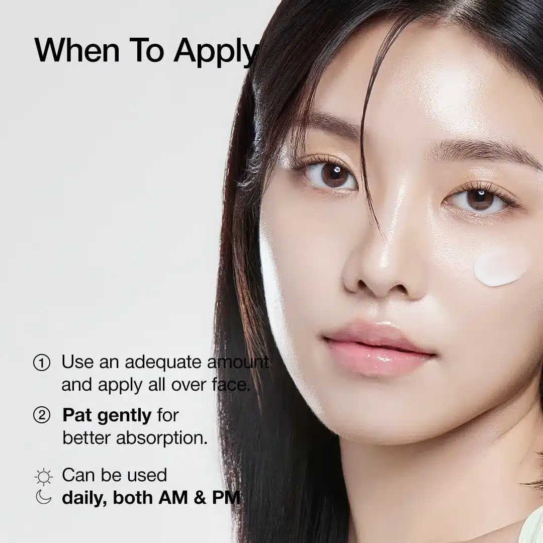 >Apply 1~2 pumps on your fingers and apply all over the face and neck.