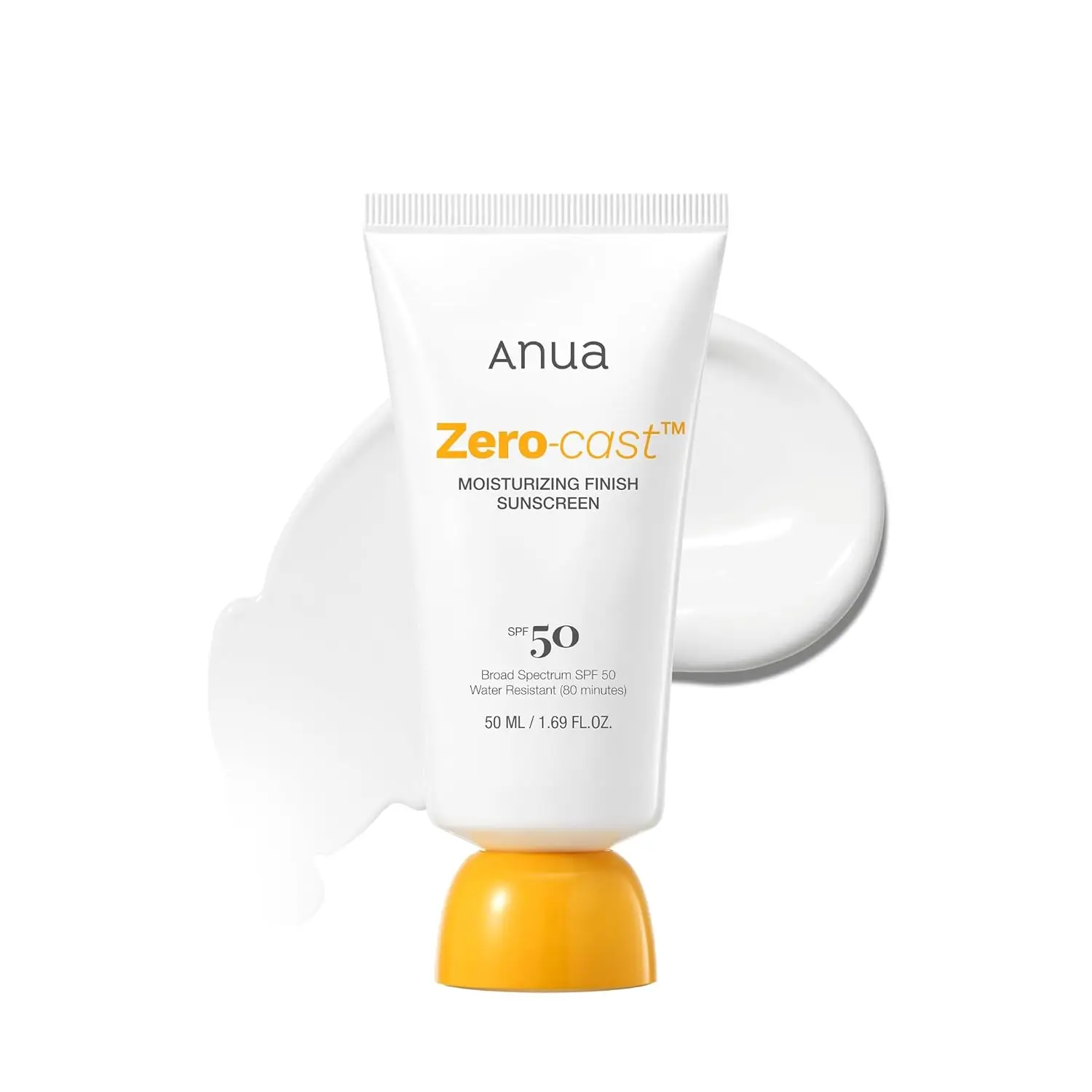 ANUA Zero Cast Moisturizing Finish Sunscreen 50ml is a lightweight daily sunscreen with SPF 50 PA++++ that protects your skin from harmful sun rays while keeping it soft and hydrated. It absorbs easily with no white cast, feels non-greasy, and leaves a natural finish—perfect for everyday use and under makeup.