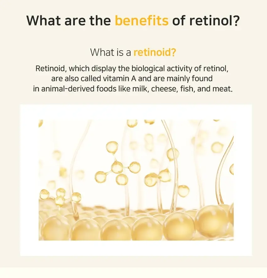•Retinoid: Display the biological activity of Retinol, also called Vitamin A, and is mainly found in animal-derived foods like milk, cheese, fish, and meat.