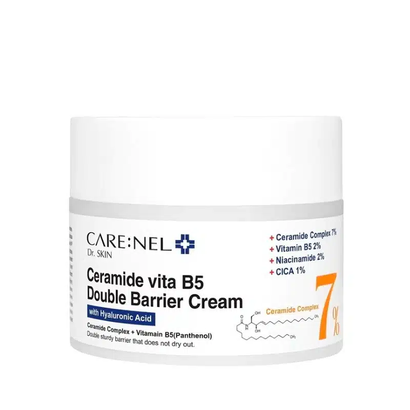 CARE:NEL 7% Ceramide Vita B5 Double Barrier Cream is a rich and nourishing cream designed to strengthen and protect the skin’s barrier. Infused with 7% ceramides and vitamin B5, this cream helps to lock in moisture, soothe irritation, and improve skin elasticity.
