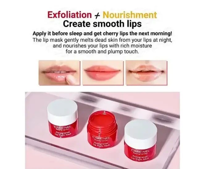 The CARENEL Pomegranate Lip Night Mask is tailored to deeply hydrate and rejuvenate dry lips, featuring pomegranate extract for its revitalizing properties. As an overnight treatment, it aims to repair and nourish lips, leaving them softer and smoother by morning.
