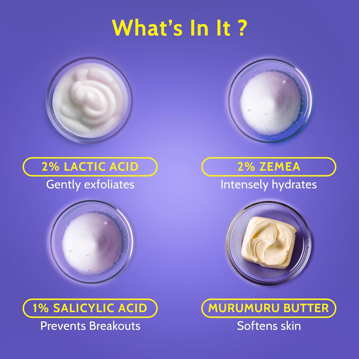 Gently exfoliate and renew your skin with this lactic acid-powered body wash. It helps remove dead skin cells, unclog pores, and smooth rough texture while keeping skin hydrated and soft after every wash. Perfect for daily use to reveal healthy, glowing skin.