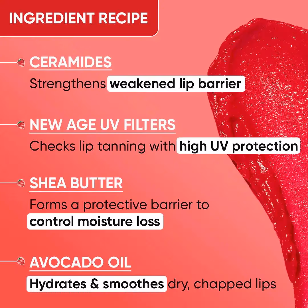 A hydrating, sun-protective tinted lip balm that nourishes your lips while delivering a vibrant strawberry-red flush — perfect for daily wear with skincare benefits.
