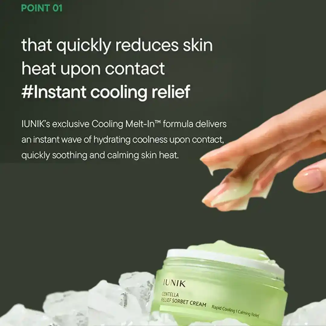 iUNIK Centella Relief Sorbet Cream 50ml is a lightweight, cooling moisturizer that instantly soothes irritated or heated skin. It hydrates deeply while balancing oil and moisture, making it perfect for sensitive, oily, or combination skin.
