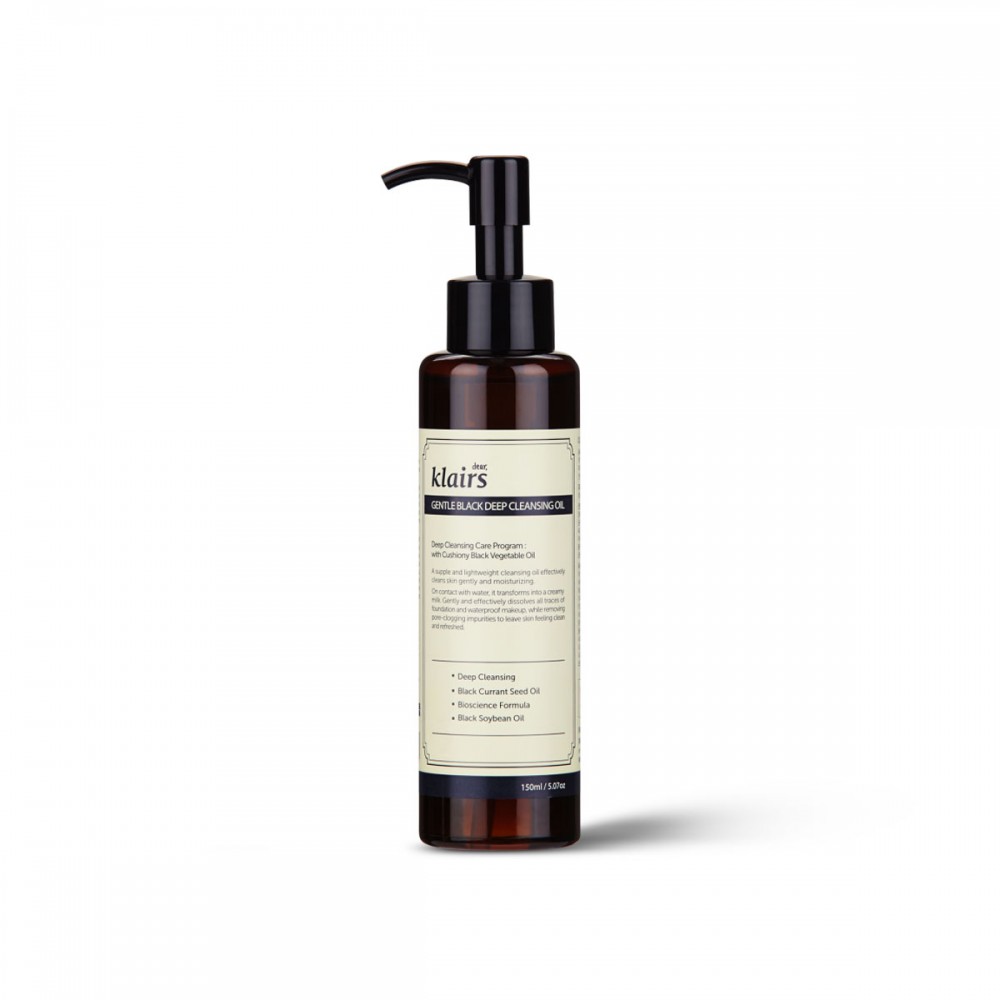 The Dear, Klairs Gentle Black Deep Cleansing Oil is perfect for mild, deep cleansing with ingredients extracted from natural black grains.