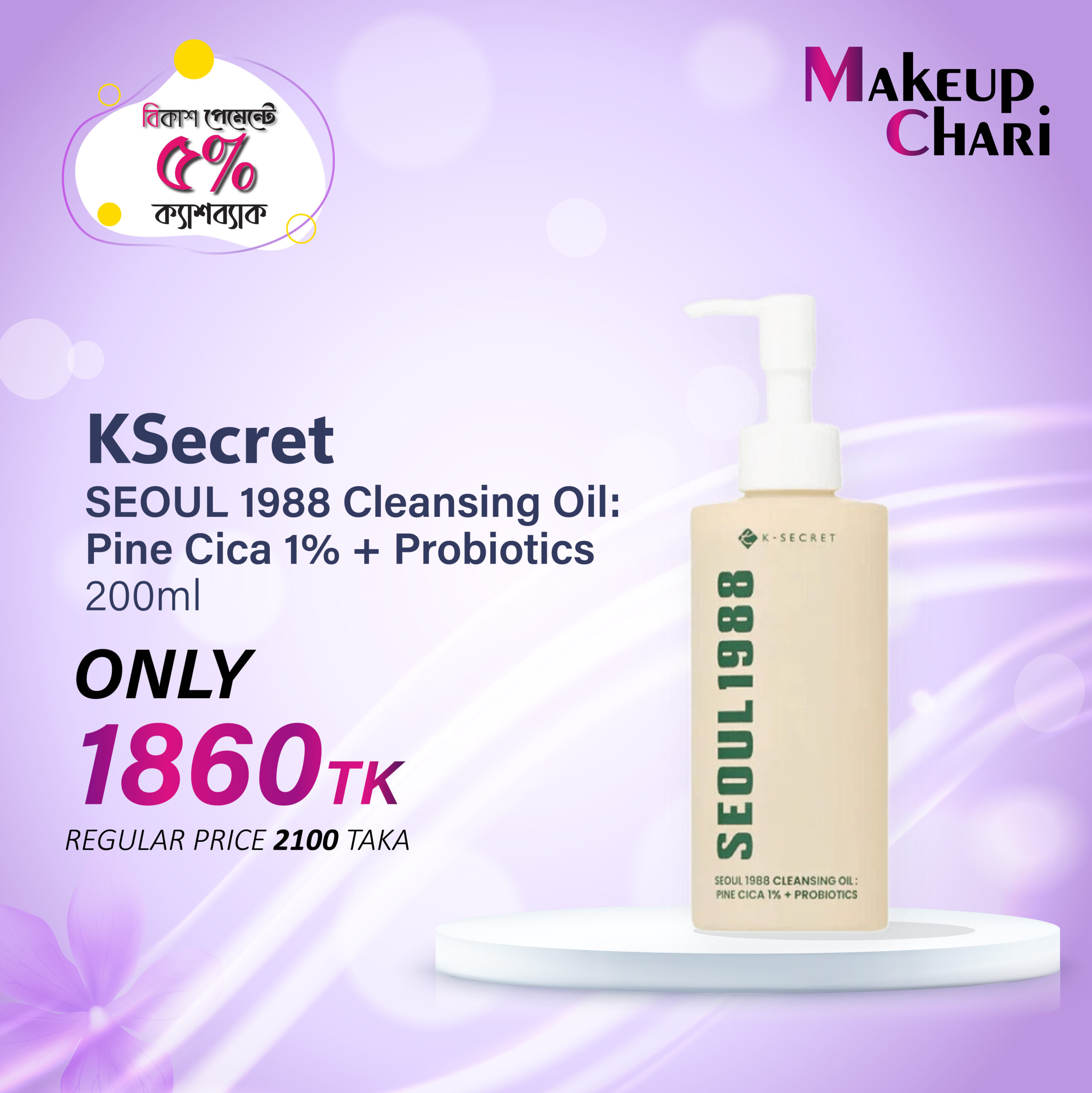 KSECRET SEOUL 1988 Cleansing Oil : Pine Cica 1% + Probiotics 200ml