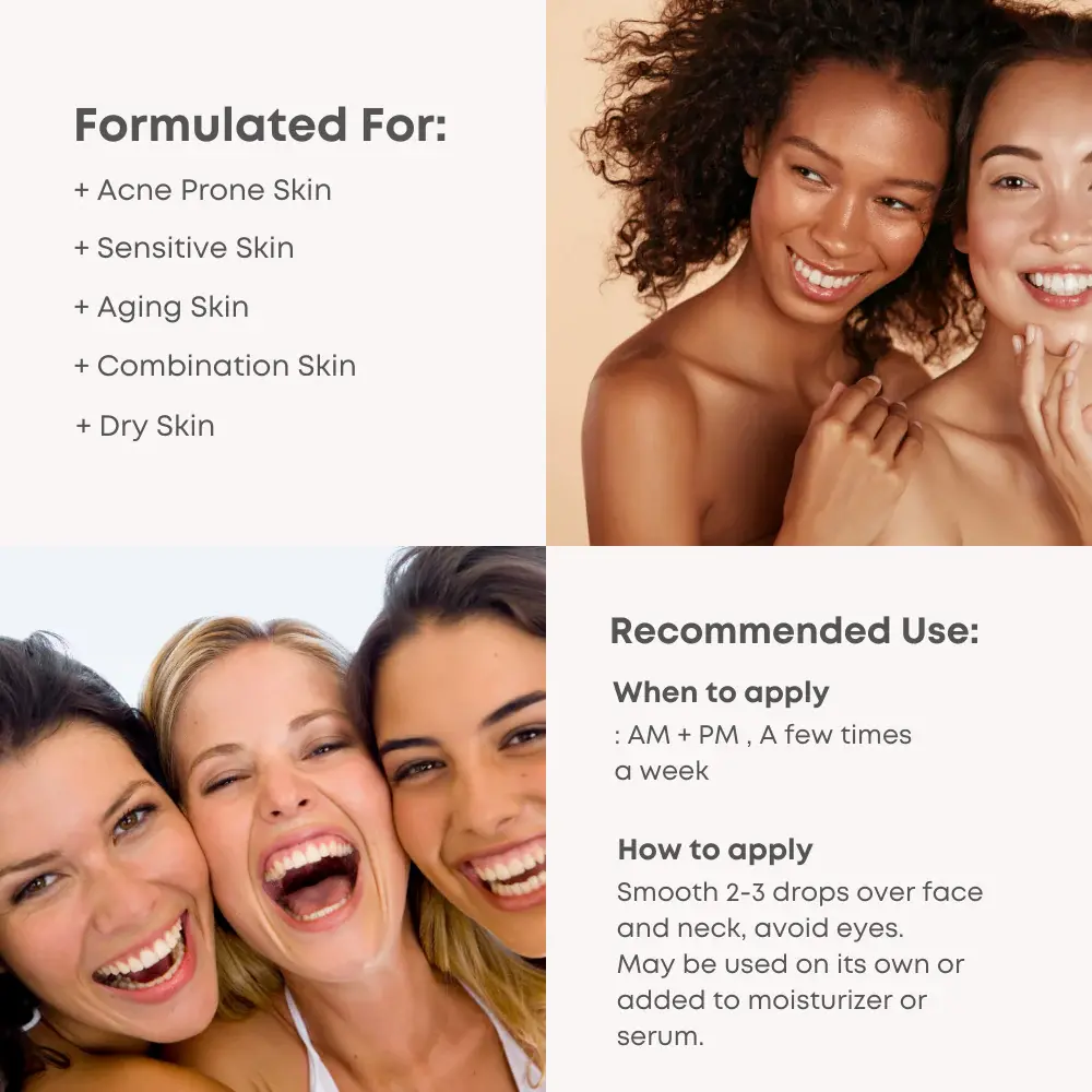 - Visibily improves uneven tones and minimizes enlarged pores with Vitamin B in Niacinamide.
