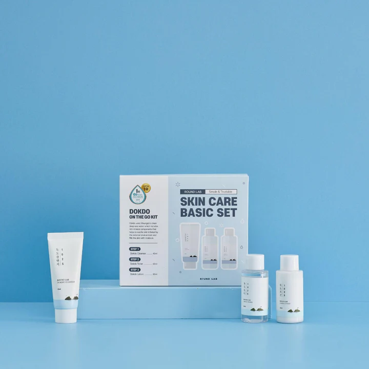 In the Dokdo On The Go Kit, you’ll find: 1025 Dokdo Cleanser (1.35fl.oz) + 1025 Dokdo Toner (1.69fl.oz) + 1025 Dokdo Lotion (1.69fl.oz)