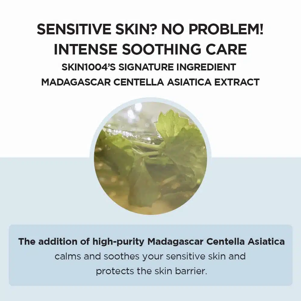 - Green tea water and Centella calms and moisturizes dry and sensitive skin