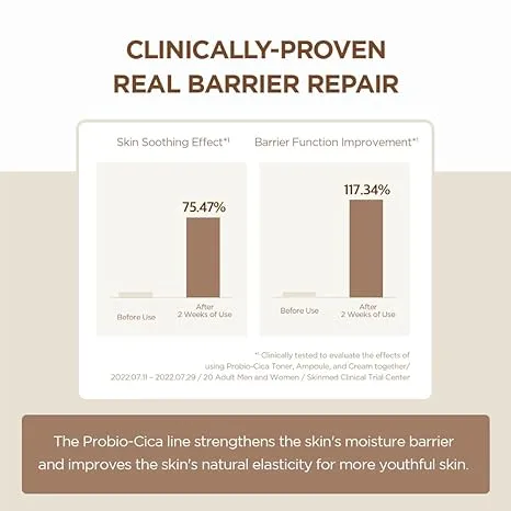 2. Probio-cica and TECA: These ingredients are likely included for their additional calming effects and skin repair properties.